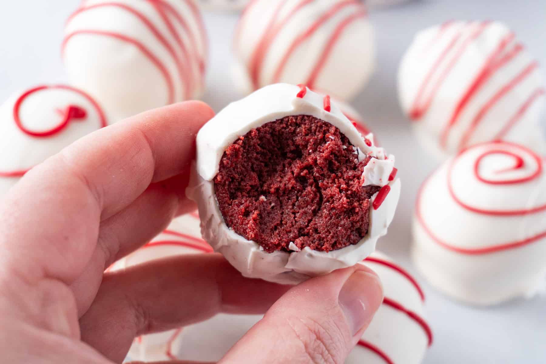 I love making red velvet brownies from scratch, but when it comes to these cake balls, a boxed cake mix with store bought frosting works just fine!